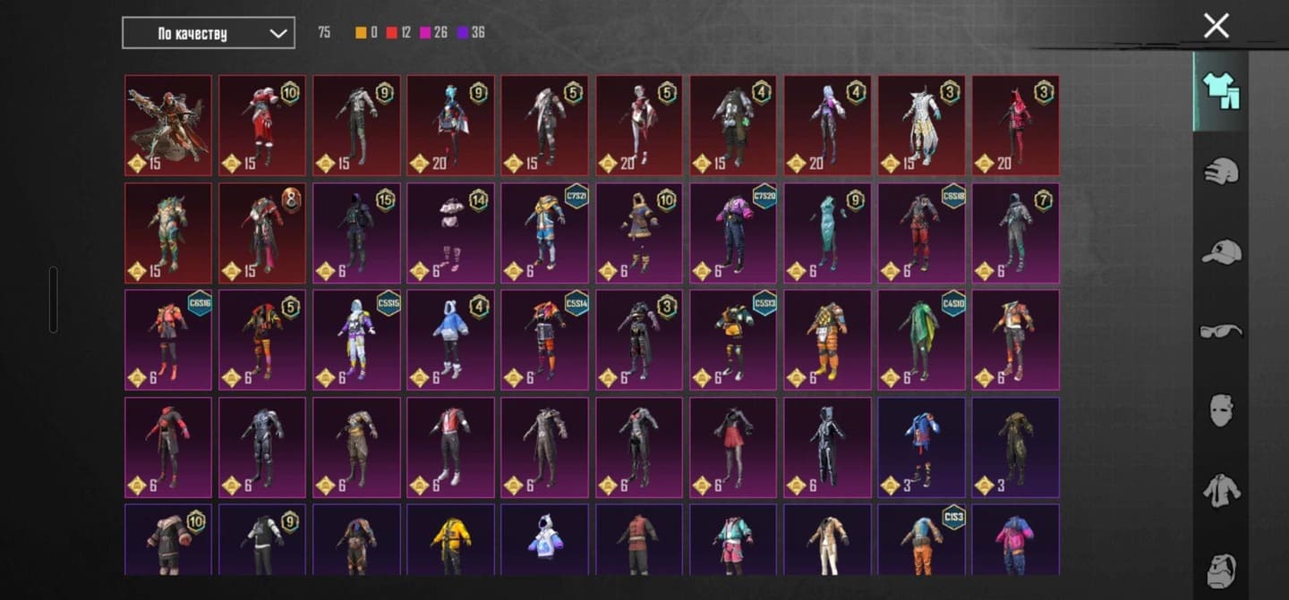 👚Топ костюмы: 164;⭐️Royale Pass: 2 сезон, 6-19сезон;🌈Скины на оружие: 67;