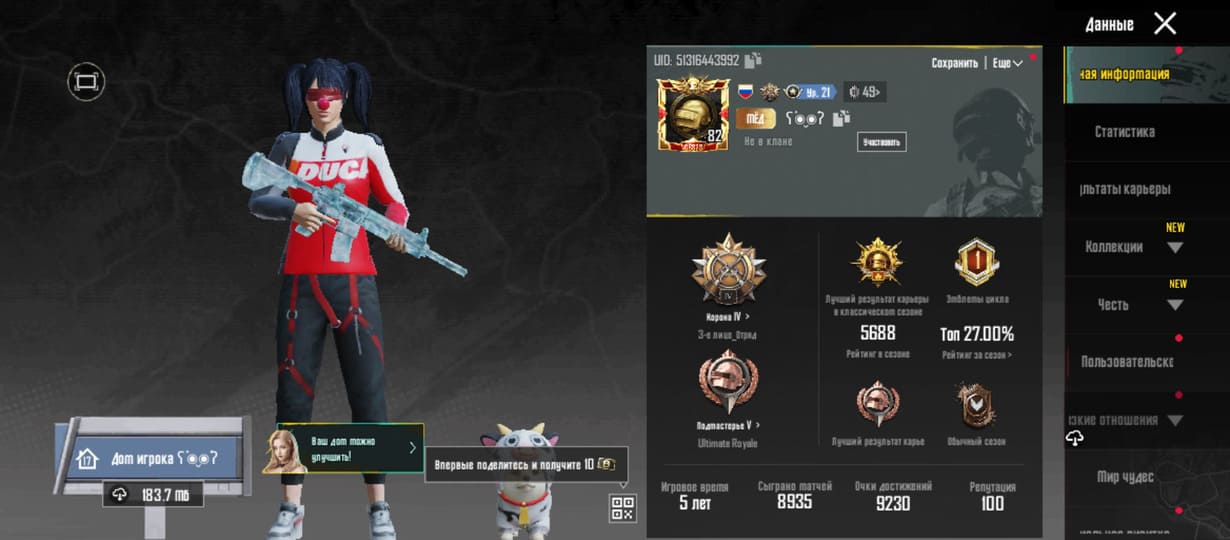 👚Топ костюмы: 164;⭐️Royale Pass: 2 сезон, 6-19сезон;🌈Скины на оружие: 67;