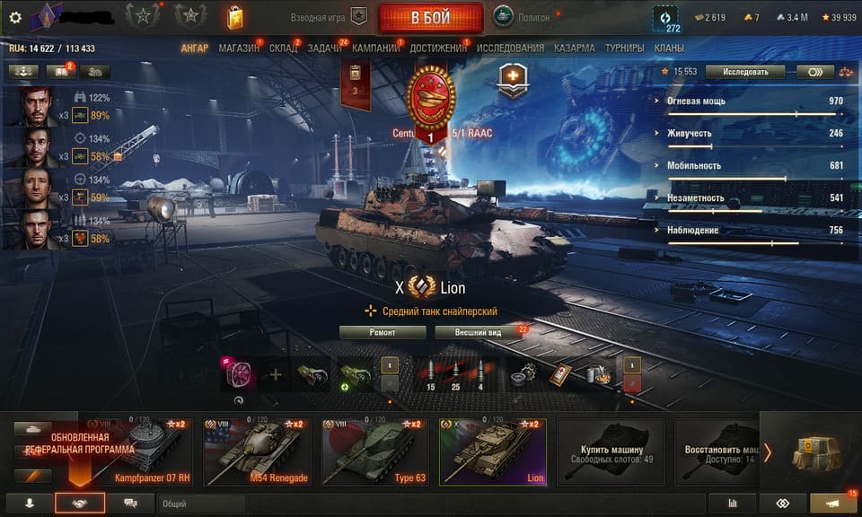 🎌Количество боев: 5 000; 🏆Процент побед: 46%; 💰Количество кредитов: 5.84 млн