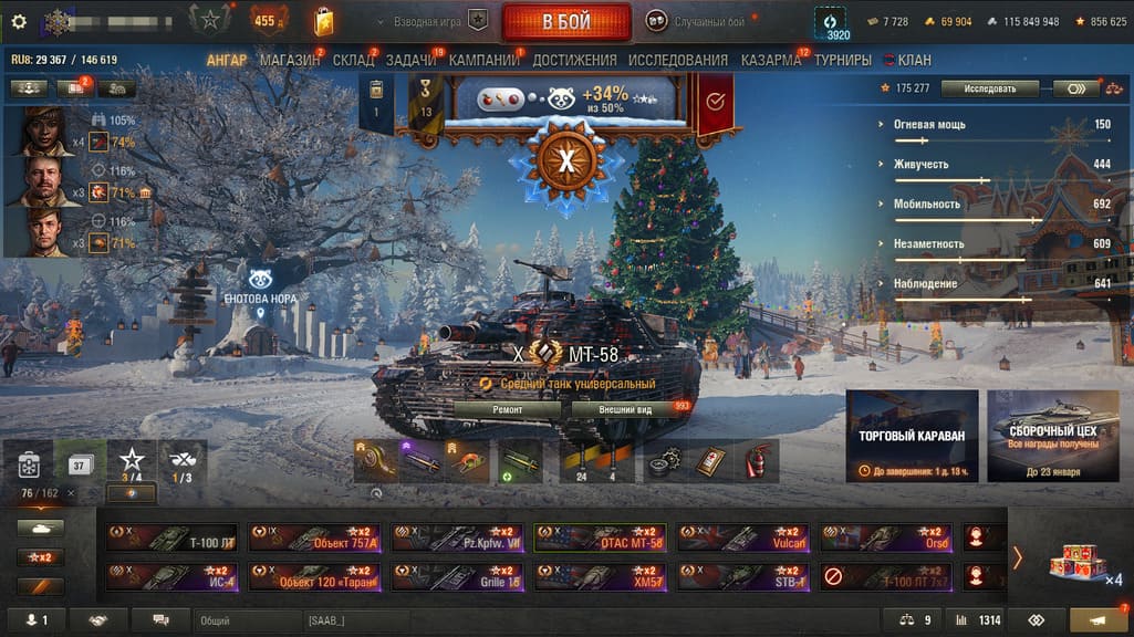 🎌Количество боев: 49 000; 🏆Процент побед: 54%; 💰Количество кредитов: 942 тыс